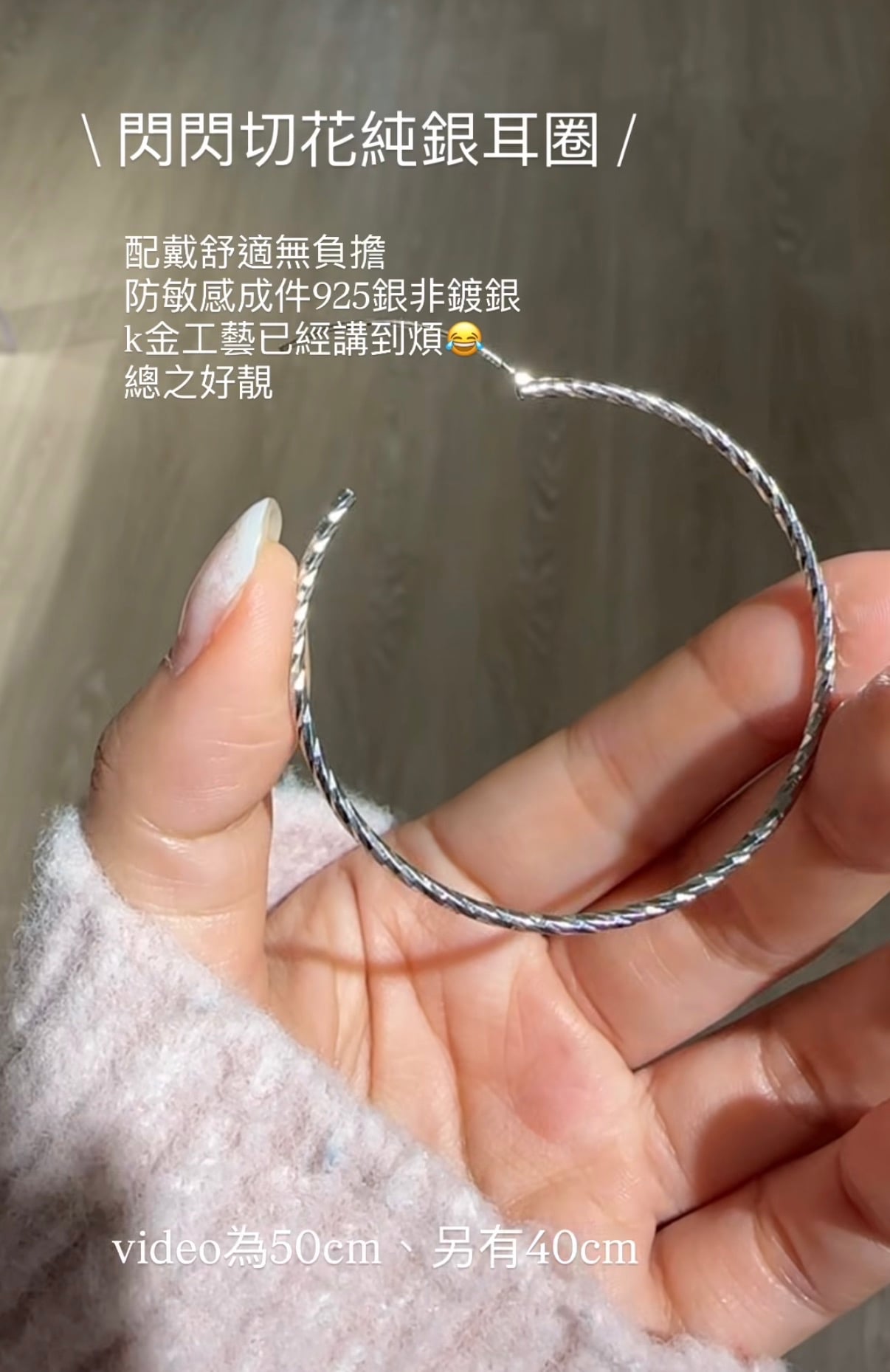 [臨時Link] 50mm閃閃切花純銀耳圈Sparkle Big Hoop Earring