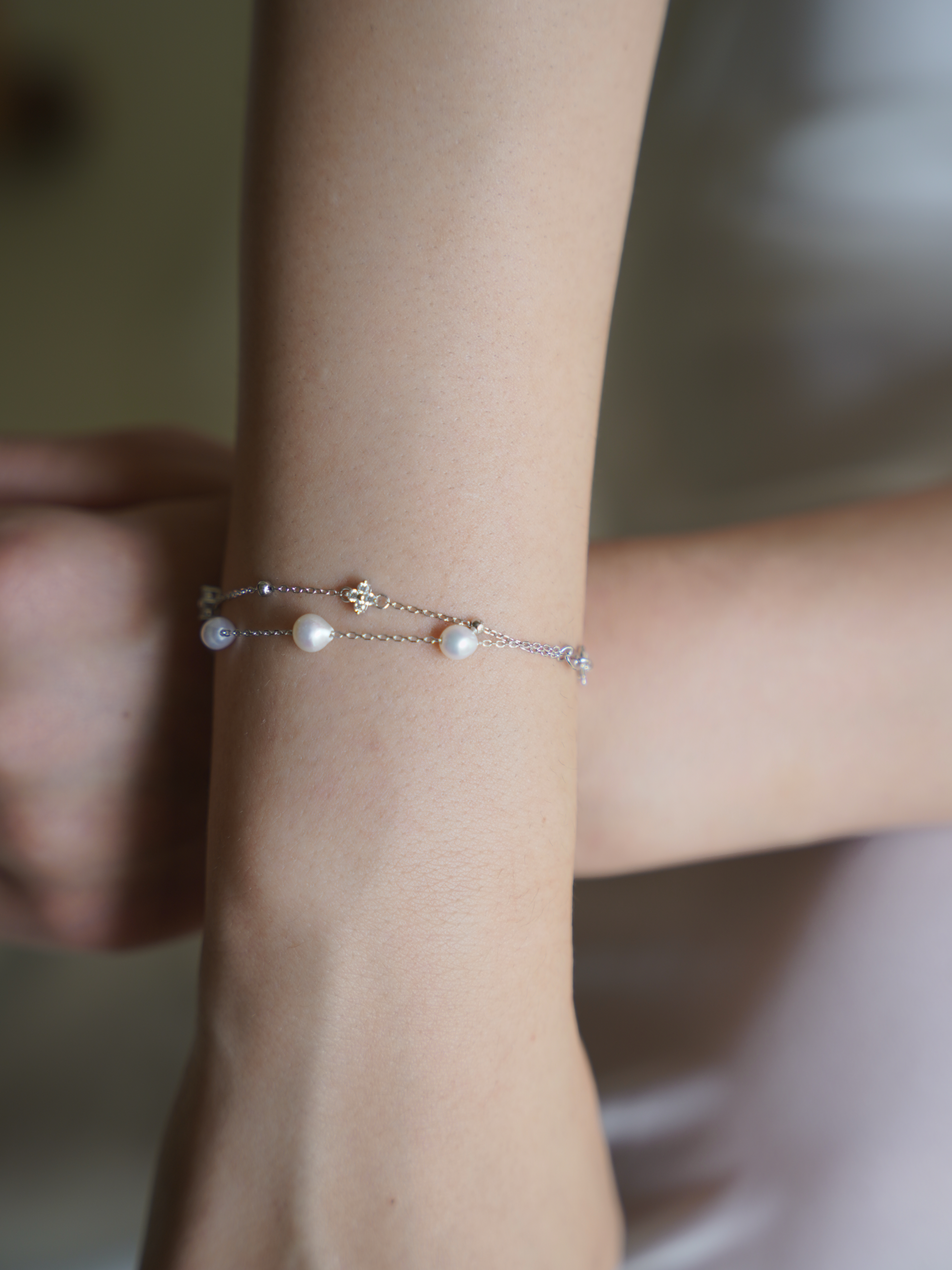 四葉草雙層珍珠手鏈 Double Strand Clover Pearl Bracelet