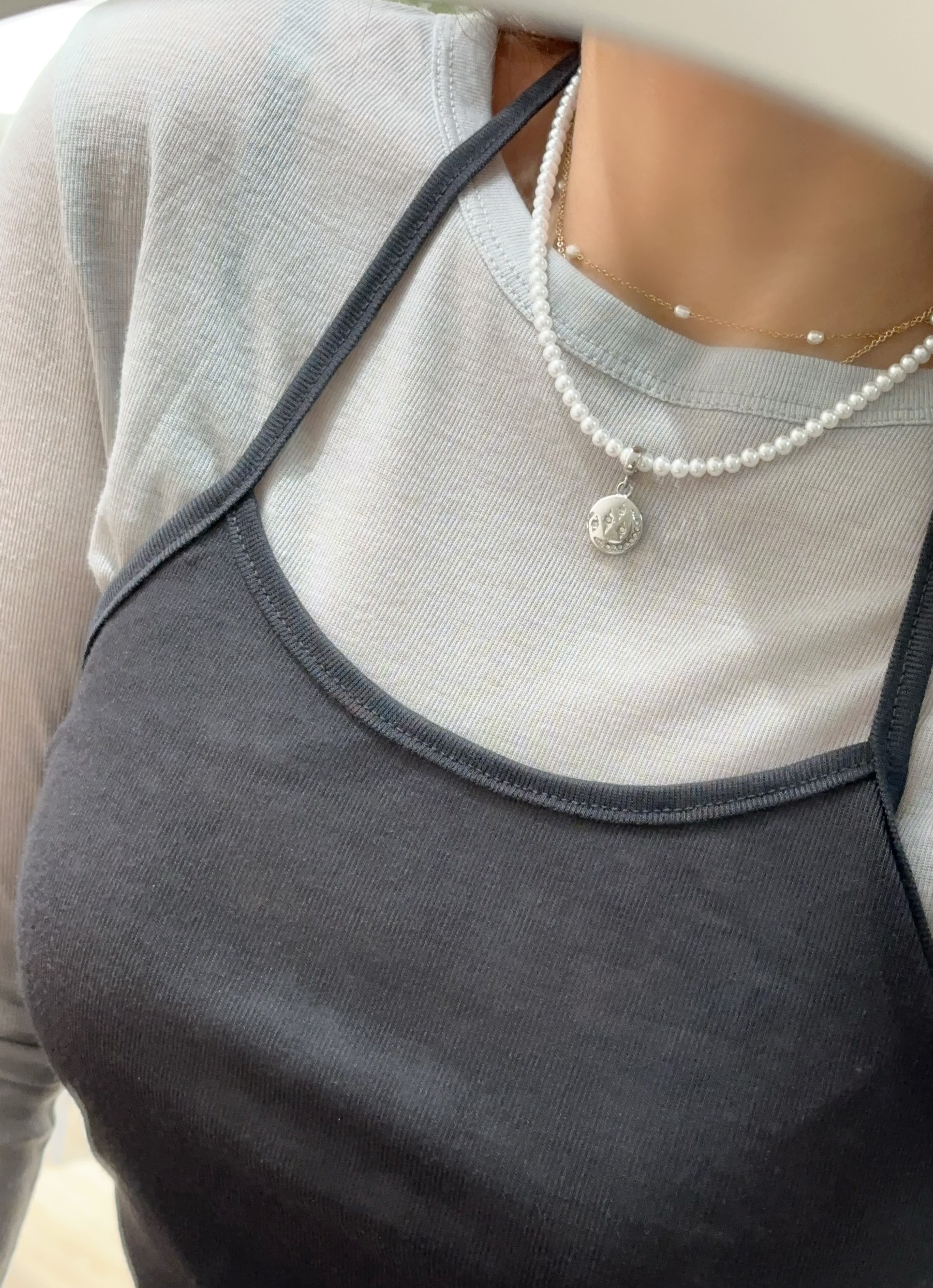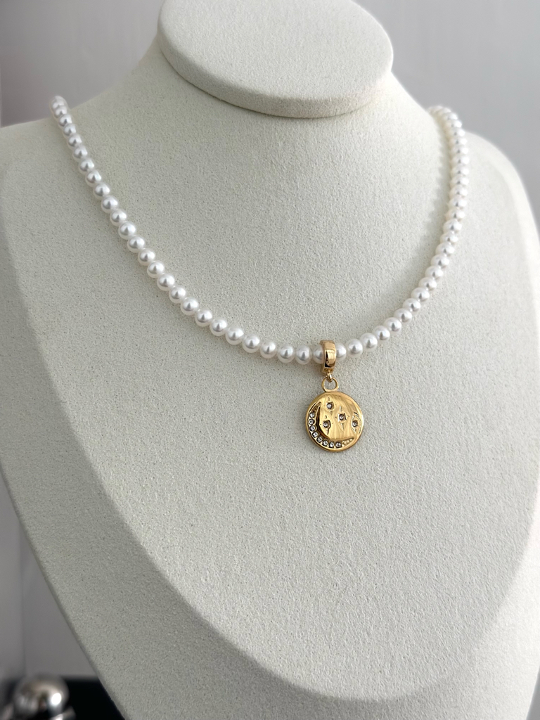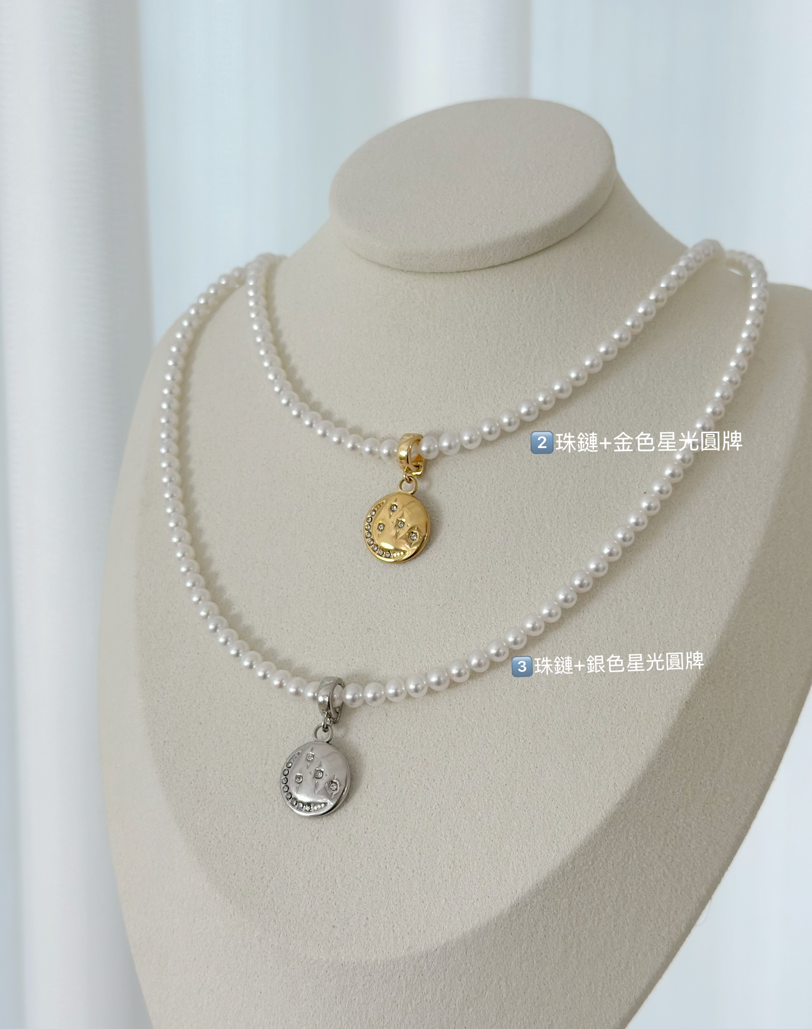 3️⃣珠鏈+銀色星光圓牌吊墜