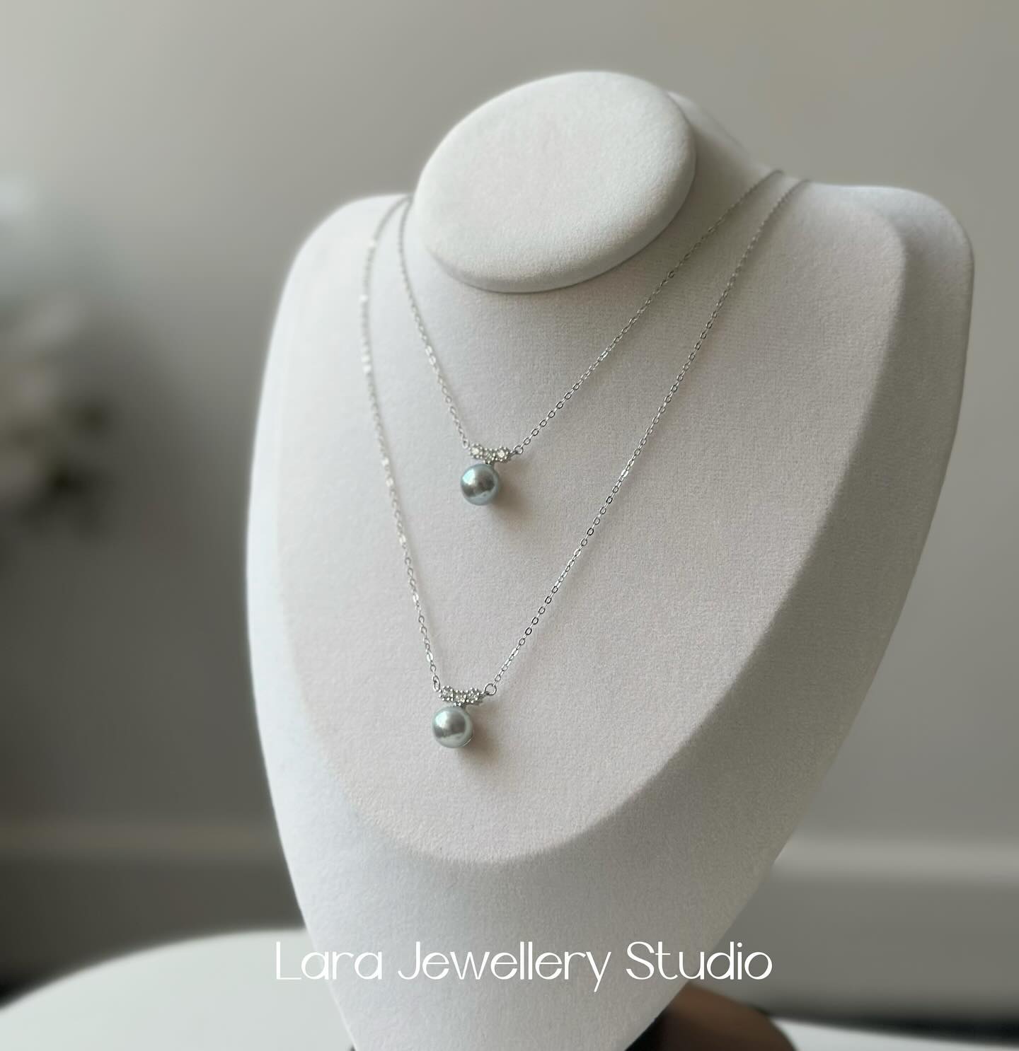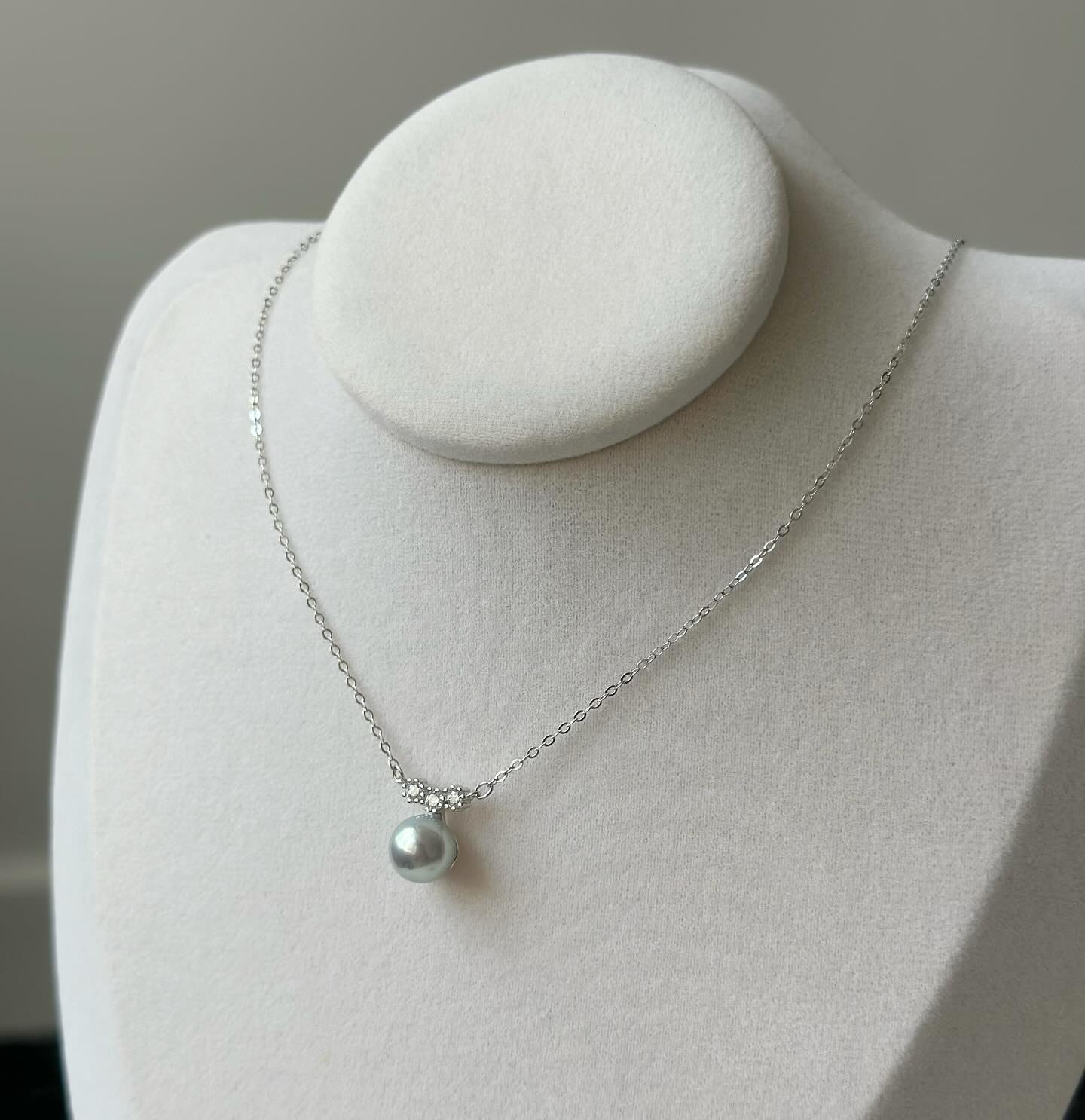 新珠💓真多麻三石頸鏈 Grey Akoya Zircon Necklace