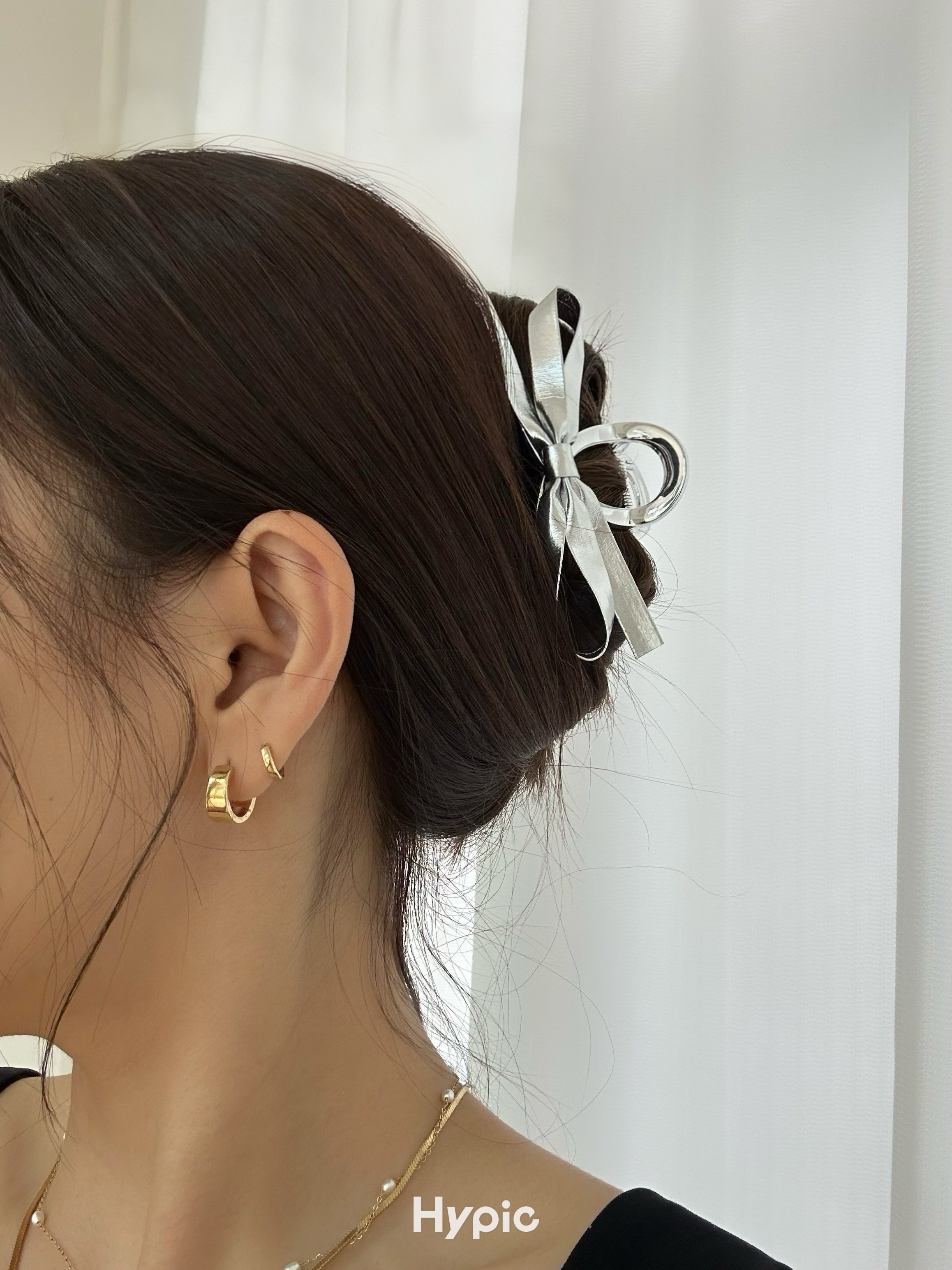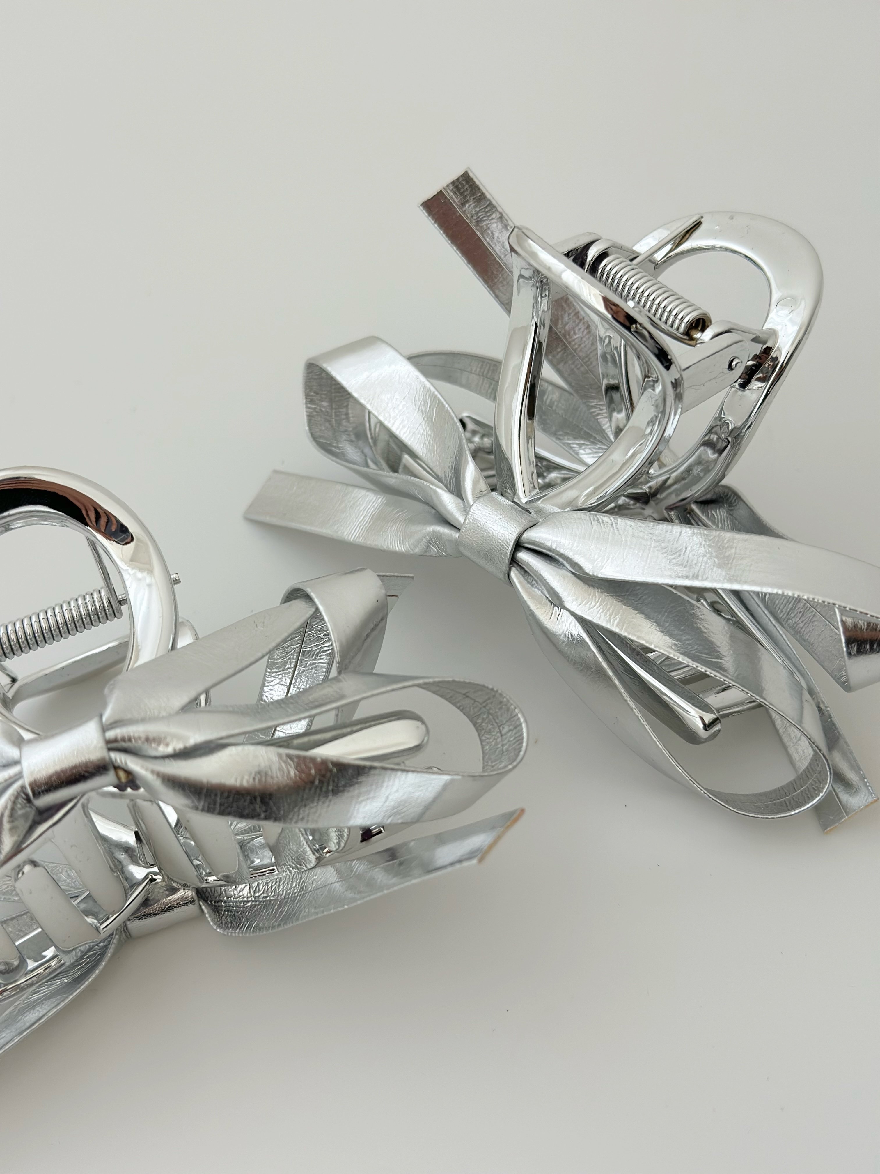 銀色金屬蝴蝶結髮夾Silver Metal Bow Claw Clip