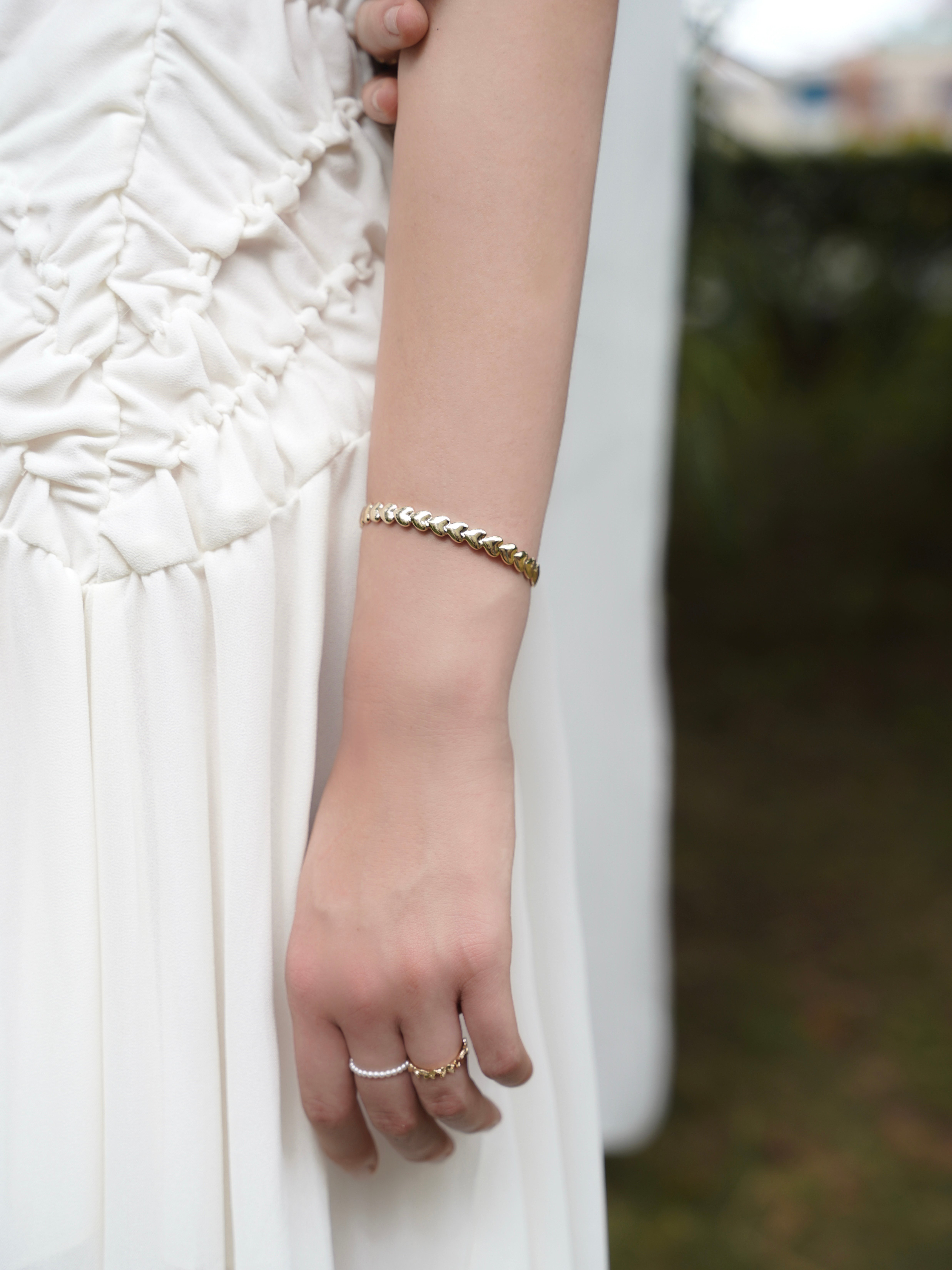 材質:法國18k 包金 尺寸:約45mm x 59mm (可調較) Made in Paris🤎 立體面心形連環設計而成 淡金色光澤,絕美拋光 夠搶眼又唔浮誇! 開口式設計,可自行調較大小手圍一樣適合,戴上手方便又舒適 無論你係著返件白 Tee 牛仔褲,定係晚裝出席派對,都一樣襯得起🫶🏼 送俾閨蜜、女朋友、或者自己獎勵一下都啱晒😙 一件又靚又易襯嘅飾物,點可以唔擁有?❣️ ⋱⋰ ⋱⋰ ⋱⋰ ⋱⋰ ⋱⋰ ⋱⋰ ⋱⋰ ⋱⋰ ⋱⋰ 首飾的鍍金採用了法國手工獨特plaqué or工藝,銅芯厚鍍3 microns以上18k真金,和頂級奢侈品牌用的同一種工藝。首飾在保色方面的表現遠遠超過大部分鍍金產品,致敏性也降至最低,非常適合每日穿戴。 Our plaqué or jewelry is made of brass and then covered with a thin layer of 18 k gold, with a thickness of 3 microns by electrolysing. This quality of gold plating guarantees that the jewelry will last for at least ten years. They are made in France and can be worn in peace because the gold plated minimizes the risk of allergy and oxidation. 全球直送✈️🌍 購買滿$600,即享本地(香港)免費順豐速遞送貨。 購買滿$800,即享澳門、台灣地區免費順豐速遞送貨。 正常下單後手工製作,約2-5日寄出。 接受Payme, FPS, PayPal 及銀行轉帳付款。 Worldwide Shipping ✈️🌍 Free Local(HK) Shipping On Orders Over $600 Free Macau and Taiwan Shipping on Orders Over $800 The items are handmade and will be shipped within approximately 2 - 5 days. Payment methods including Payme, FPS, PayPal and bank transfer are accepted.