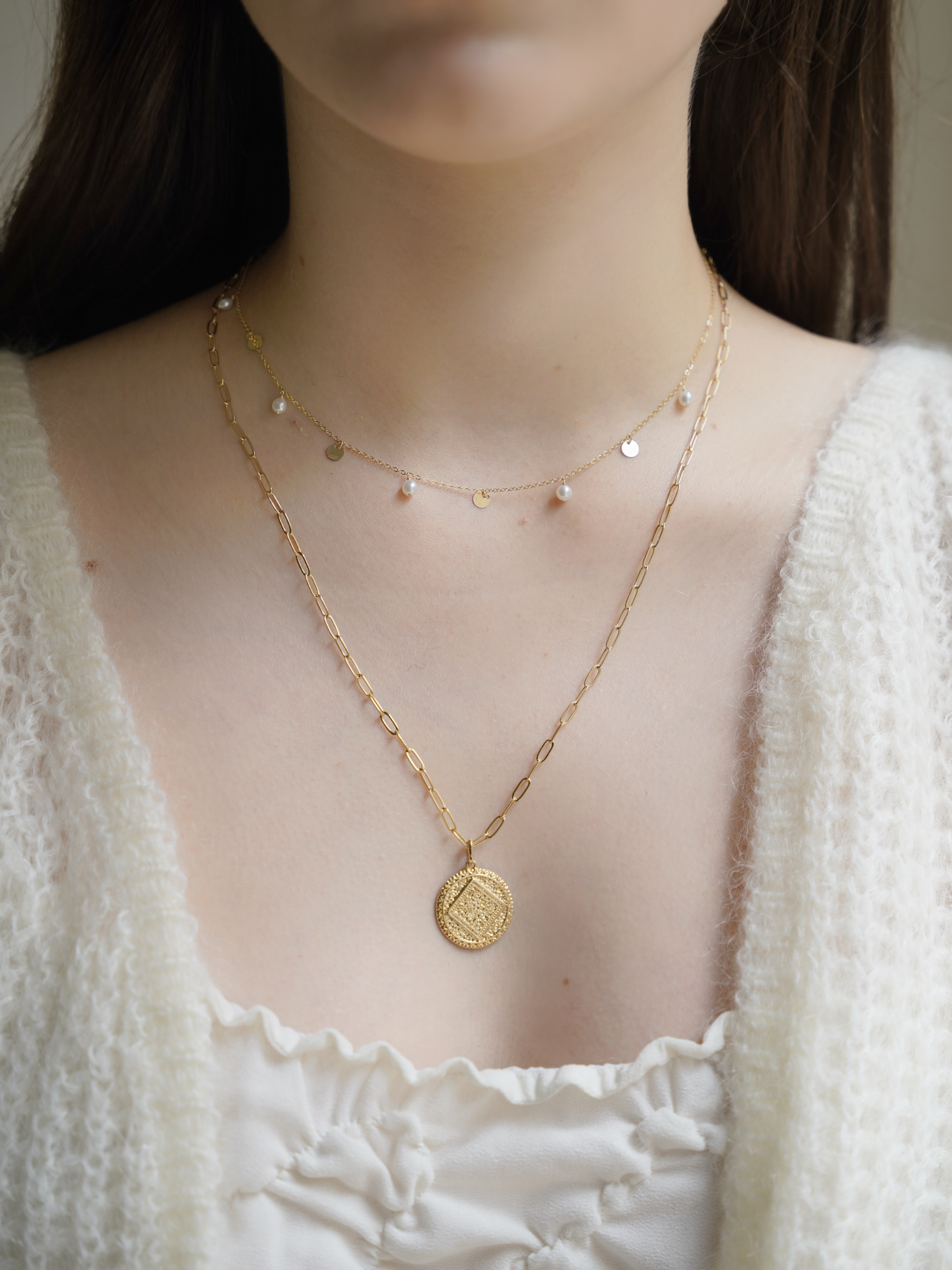 材質:法國18k 包金 尺寸:約55cm Made in Paris🤎 精緻的立體浮雕與滾珠設計 令吊墜極具皇室復古與典雅奢華感 鏈條採用有存在感的長方鏈 集法式復古工藝與現代時尚設計為一體 戴起立刻成為整體造型焦點 散發自信、藝術氣息的獨特魅力 ⋱⋰ ⋱⋰ ⋱⋰ ⋱⋰ ⋱⋰ ⋱⋰ ⋱⋰ ⋱⋰ ⋱⋰ 首飾的鍍金採用了法國手工獨特plaqué or工藝,銅芯厚鍍3 microns以上18k真金,和頂級奢侈品牌用的同一種工藝。首飾在保色方面的表現遠遠超過大部分鍍金產品,致敏性也降至最低,非常適合每日穿戴。 Our plaqué or jewelry is made of brass and then covered with a thin layer of 18 k gold, with a thickness of 3 microns by electrolysing. This quality of gold plating guarantees that the jewelry will last for at least ten years. They are made in France and can be worn in peace because the gold plated minimizes the risk of allergy and oxidation. 全球直送✈️🌍 購買滿$600,即享本地(香港)免費順豐速遞送貨。 購買滿$800,即享澳門、台灣地區免費順豐速遞送貨。 正常下單後手工製作,約2-5日寄出。 接受Payme, FPS, PayPal 及銀行轉帳付款。 Worldwide Shipping ✈️🌍 Free Local(HK) Shipping On Orders Over $600 Free Macau and Taiwan Shipping on Orders Over $800 The items are handmade and will be shipped within approximately 2 - 5 days. Payment methods including Payme, FPS, PayPal and bank transfer are accepted.