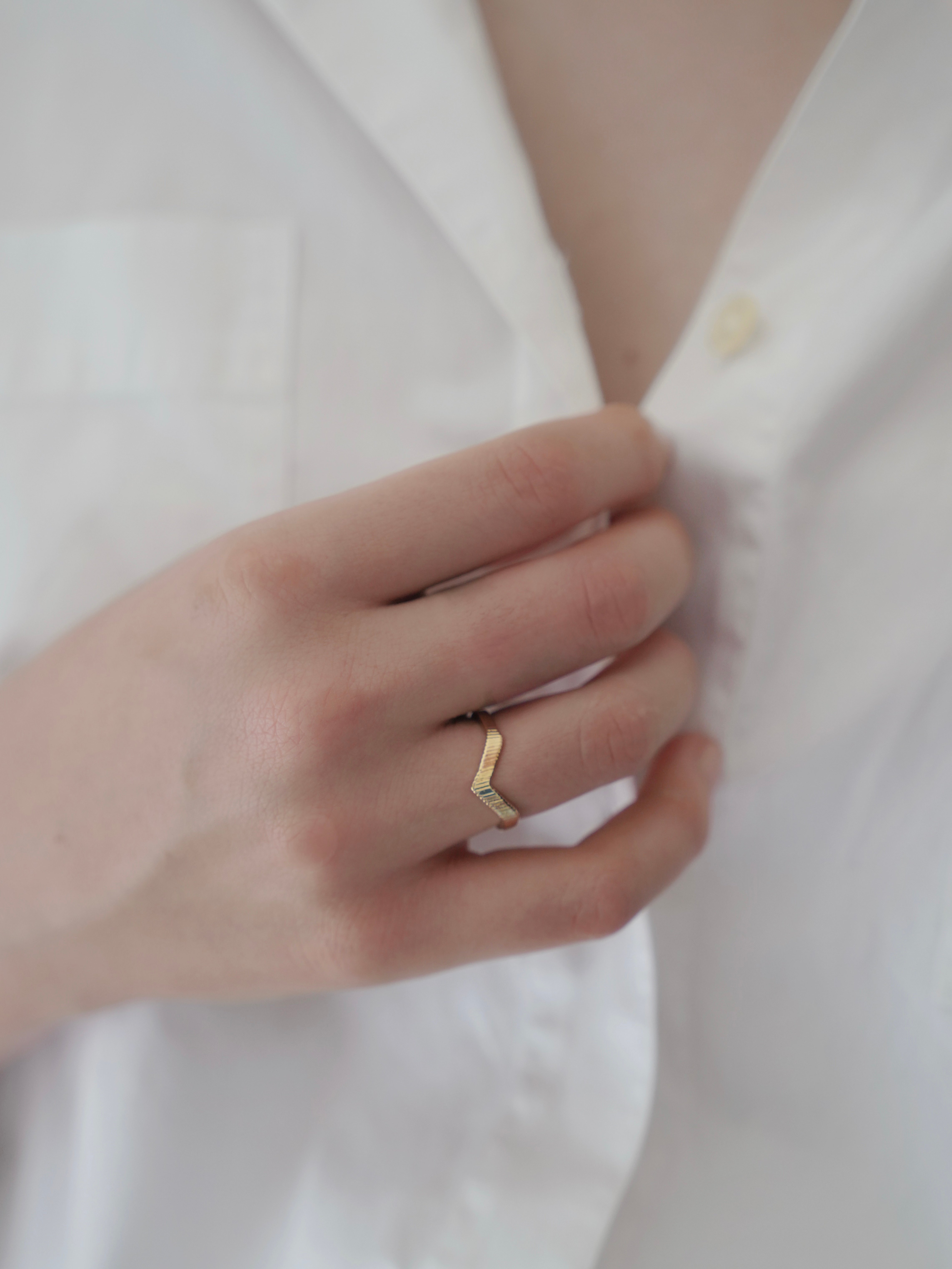 材質:法國18k 包金 Made in Paris🤎 獨特波浪嘅直紋營造出立體感,簡約V字設計不單提升佩戴舒適度,更突顯個性與品味✨ 無論是單獨佩戴或與其他戒指疊搭,都能展現低調奢華風格🤍 係日常穿搭同特別場合嘅理想之選! ⋱⋰ ⋱⋰ ⋱⋰ ⋱⋰ ⋱⋰ ⋱⋰ ⋱⋰ ⋱⋰ ⋱⋰ 首飾的鍍金採用了法國手工獨特plaqué or工藝,銅芯厚鍍3 microns以上18k真金,和頂級奢侈品牌用的同一種工藝。首飾在保色方面的表現遠遠超過大部分鍍金產品,致敏性也降至最低,非常適合每日穿戴。 Our plaqué or jewelry is made of brass and then covered with a thin layer of 18 k gold, with a thickness of 3 microns by electrolysing. This quality of gold plating guarantees that the jewelry will last for at least ten years. They are made in France and can be worn in peace because the gold plated minimizes the risk of allergy and oxidation. 全球直送✈️🌍 購買滿$600,即享本地(香港)免費順豐速遞送貨。 購買滿$800,即享澳門、台灣地區免費順豐速遞送貨。 正常下單後手工製作,約2-5日寄出。 接受Payme, FPS, PayPal 及銀行轉帳付款。 Worldwide Shipping ✈️🌍 Free Local(HK) Shipping On Orders Over $600 Free Macau and Taiwan Shipping on Orders Over $800 The items are handmade and will be shipped within approximately 2 - 5 days. Payment methods including Payme, FPS, PayPal and bank transfer are accepted.