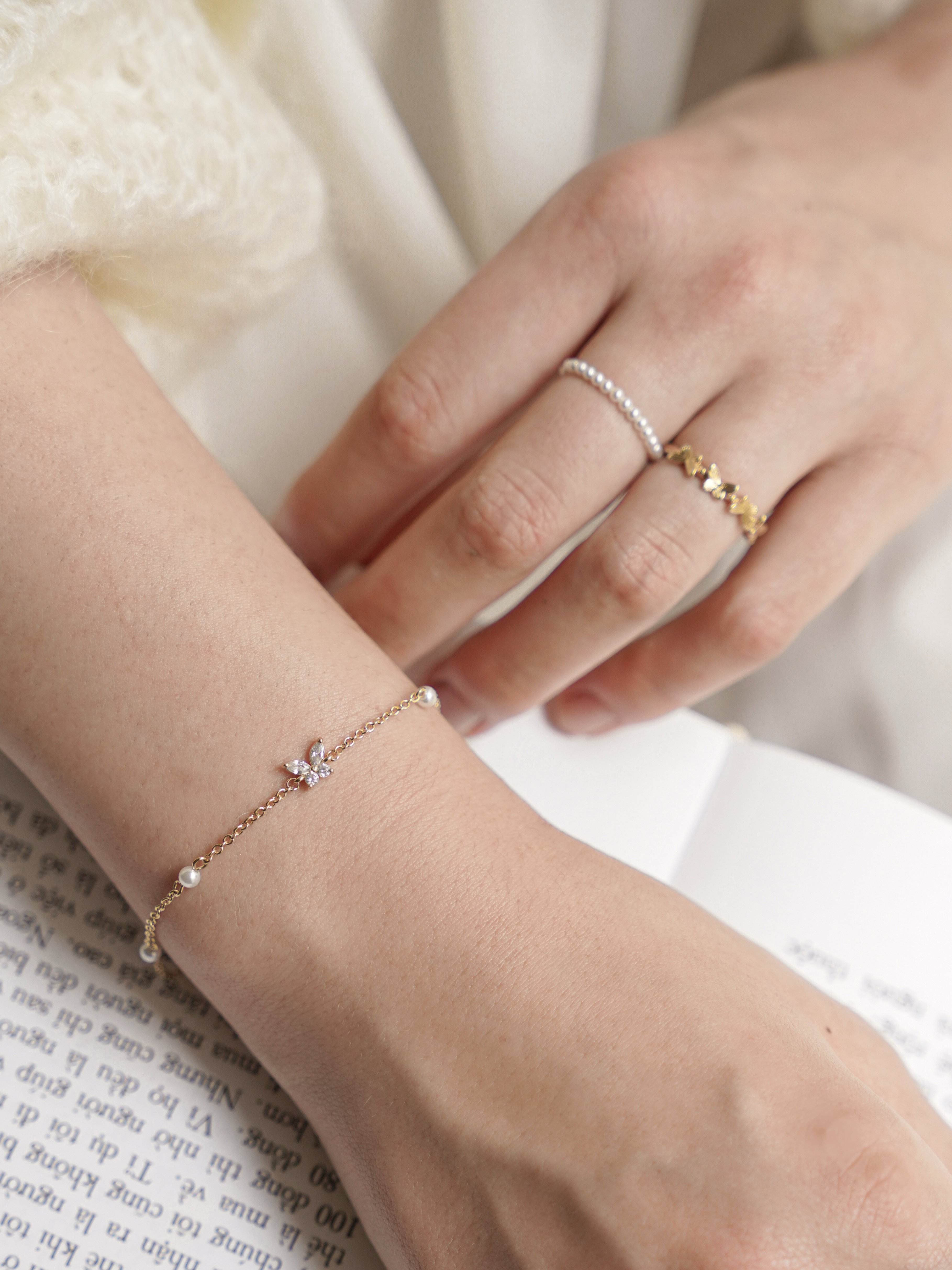 材質:法國18k 包金+鋯石 尺寸:約15+4cm Made in Paris🤎 超愛的自家設計款!! bling bling 鋯石蝴蝶生動又閃耀 加上雪白貝珠點綴,溫柔感爆棚 戴上手即刻變仙氣女神🤍 長度特別做短,加上延長鏈 手幼的靚靚都不用擔心~ 包你每日都愛不釋手! ⋱⋰ ⋱⋰ ⋱⋰ ⋱⋰ ⋱⋰ ⋱⋰ ⋱⋰ ⋱⋰ ⋱⋰ 首飾的鍍金採用了法國手工獨特plaqué or工藝,銅芯厚鍍3 microns以上18k真金,和頂級奢侈品牌用的同一種工藝。首飾在保色方面的表現遠遠超過大部分鍍金產品,致敏性也降至最低,非常適合每日穿戴。 Our plaqué or jewelry is made of brass and then covered with a thin layer of 18 k gold, with a thickness of 3 microns by electrolysing. This quality of gold plating guarantees that the jewelry will last for at least ten years. They are made in France and can be worn in peace because the gold plated minimizes the risk of allergy and oxidation. 全球直送✈️🌍 購買滿$600,即享本地(香港)免費順豐速遞送貨。 購買滿$800,即享澳門、台灣地區免費順豐速遞送貨。 正常下單後手工製作,約2-5日寄出。 接受Payme, FPS, PayPal 及銀行轉帳付款。 Worldwide Shipping ✈️🌍 Free Local(HK) Shipping On Orders Over $600 Free Macau and Taiwan Shipping on Orders Over $800 The items are handmade and will be shipped within approximately 2 - 5 days. Payment methods including Payme, FPS, PayPal and bank transfer are accepted.